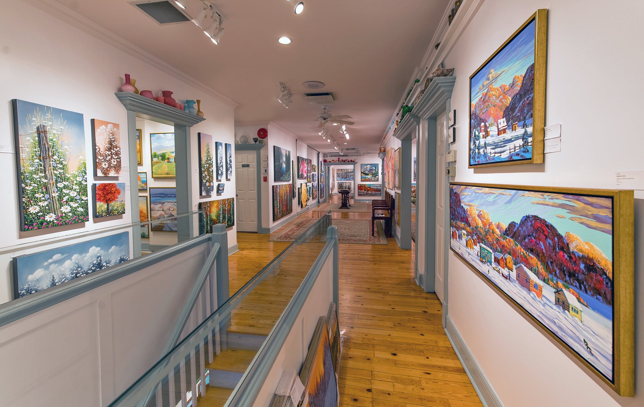 Le P’tit Bonheur est à la fois vaste et intime : vaste de par ses 6000 pi2 de salles d’exposition et intime car, dès le premier coup d’œil, le visiteur a l’heureuse impression de se retrouver chez des amis. Les petits salons du premier étage et les pièces plus aérées du second, décorés de la collection de verre antique des propriétaires, permettent aux amateurs de découvrir les œuvres d’art dans une atmosphère feutrée. Aussi imposante et invitante soit-elle, une galerie ne trouve sa substance que dans ce que le visiteur peut y retrouver.